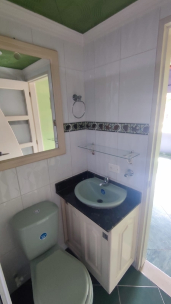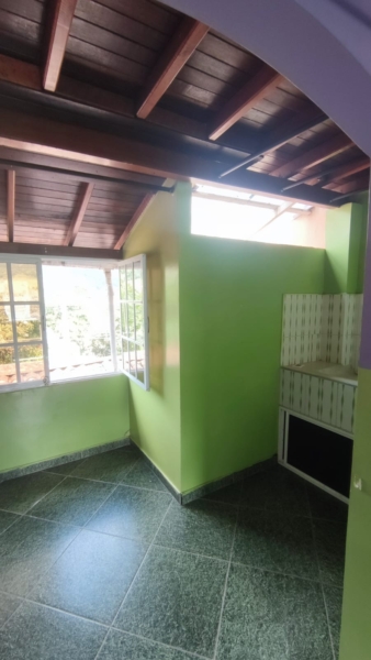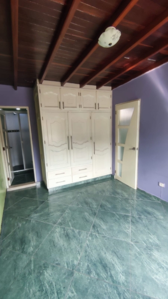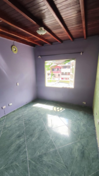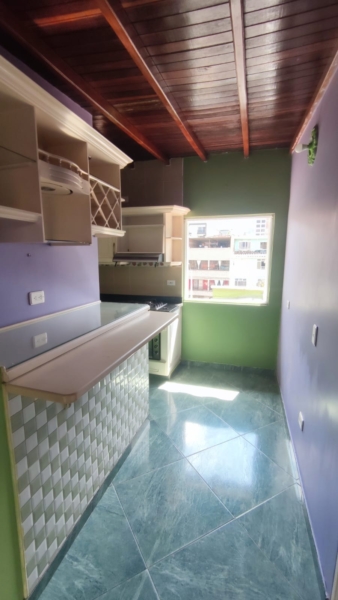 El interior de esta propiedad fusiona un estilo ecléctico con toques rústicos y tradicionales. Cuenta con una cocina compacta pero funcional que incluye una barra estilo americano. El dormitorio principal dispone de armario empotrado y acceso directo a un baño privado.Los ambientes se caracterizan por sus pisos de baldosa, techos de madera vista y paredes en tonos lila y verde, creando una atmósfera distintiva. Además, la propiedad incluye características como ventilación natural, closet y un piso en baldosa/mármol.